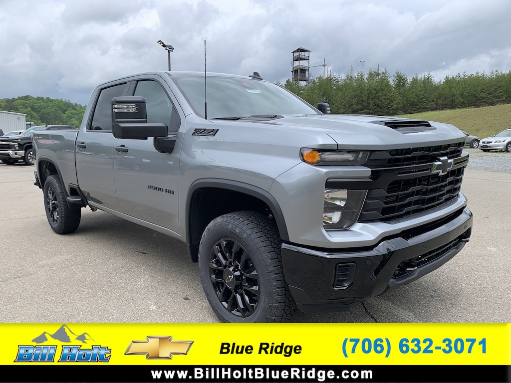 Sterling Gray Metallic 2025 Chevrolet Silverado 2500HD Custom 4WD 10-Speed Automatic Duramax 6.6L V8 Turbodiesel 10-Speed Automatic, 4WD, Black Cloth, 10-Way Power Driver Seat Adjuster w/Lumbar, 120-Volt Bed Mounted Power Outlet, 120-Volt Interior Power Outlet, 170 Amp Alternator, 2-Speed Electronic Shift Transfer Case, 220 Amp Alternator, 3.5' Diagonal Monochromatic Display DIC, 4-Wheel Disc Brakes, 4' Round Black Assist Steps (LPO), 5th Wheel & Gooseneck Trailer Wiring Provisions, 6 Speakers, 6-Speaker Audio System, 720 Cold-Cranking Amps Heavy-Duty Battery, ABS brakes, Air Conditioning, Alloy wheels, AM/FM radio: SiriusXM with 360L, Apple CarPlay/Android Auto, Auto High-beam Headlights, Auto-Dimming Inside Rear-View Mirror, Black Chevytec Spray-On Bedliner, Black Mirror Caps, Black Tailgate Lettering (LPO), Bluetooth For Phone, Brake assist, Chevrolet Connected Access Capable, Cloth Seat Trim, Color-Keyed Carpeting Floor Covering, Compass, Custom Blackout Package, Custom Convenience Package, Custom Value Package, CX Safety Package, Deep-Tinted Glass, Delay-off headlights, Driver door bin, Dual front impact airbags, Dual front side impact airbags, Dual Rear USB Ports (Charge Only), Durabed Pickup Bed, Electric Rear-Window Defogger, Electronic Cruise Control w/Set & Resume Speed, Electronic Stability Control, Emergency communication system: OnStar, Engine Block Heater, Exhaust Brake, EZ Lift Power Lock & Release Tailgate, Front 40/20/40 Split-Bench Seats w/Lockable Storage, Front anti-roll bar, Front Center Armrest w/Storage, Front License Plate Kit, Front reading lights, Front Rubberized Vinyl Floor Mats, Front wheel independent suspension, Fully automatic headlights, HD Rear Vision Camera, Heated & Auto-Dimming Vertical Trailering Mirrors, Heated door mirrors, Heated Vertical Trailering Mirrors, Hill Descent Control, Illuminated entry, Lane Change Alert w/Side Blind Zone Alert, LED Cargo Area Lighting, Locking Tailgate, Low tire pressure warning, Manual Tailgate Function w/No EZ Lift, Manual Tilt-Wheel Steering Column, Occupant sensing airbag, Off-Road Suspension, OnStar Services Capable, Outside temperature display, Overhead airbag, Overhead console, Panic alarm, Passenger door bin, Passenger vanity mirror, Power Door Locks, Power door mirrors, Power Front Windows w/Driver Express Up/Down, Power Front Windows w/Passenger Express Down, Power Rear Windows w/Express Down, Power steering, Power windows, Preferred Equipment Group 1CX, Premium audio system: Chevrolet Infotainment 3, Push Button Start, Radio: Chevrolet Infotainment 3 System, Rear 60/40 Folding Bench Seat (Folds Up), Rear Cross Traffic Alert, Rear reading lights, Rear Rubberized Vinyl Floor Mats, Rear step bumper, Remote Keyless Entry, Remote keyless entry, Remote Vehicle Starter System, SiriusXM w/360L Trial Subscription, Speed control, Split folding rear seat, Standard Tailgate, Suspension Package, Tachometer, Tilt steering wheel, Traction control, Trip computer, Turn signal indicator mirrors, Ultrasonic Front & Rear Park Assist, Unauthorized Entry Theft-Deterrent System, Variably intermittent wipers, Voltmeter, Wheels: 20' 10-Spoke Machined Aluminum, Wheels: 20' High Gloss Black Painted, Wi-Fi Hotspot Capable, Winter Grille Cover, Wireless Phone Projection, Z71 Off-Road Package, 10-Speed Automatic, 4WD, Black Cloth.