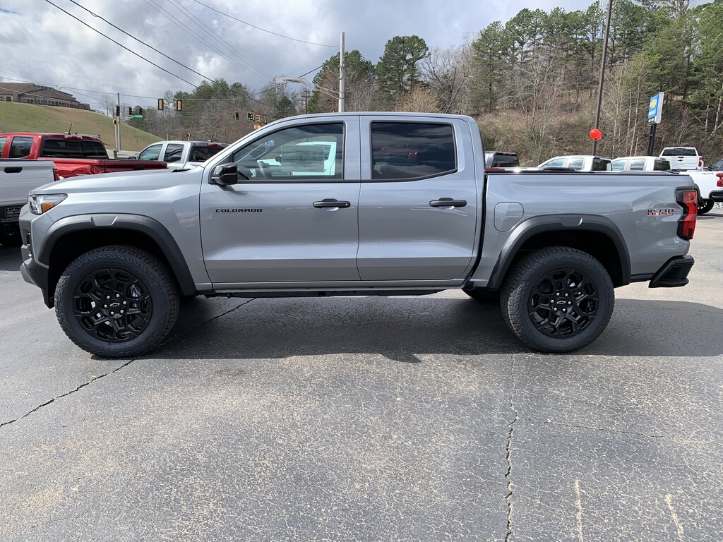 Sterling Gray Metallic 2026 Chevrolet Colorado Trail Boss 4WD 8-Speed Automatic 2.7L I4 Turbocharged DOHC 16V LEV3-ULEV50 310hp 4WD, 1st and 2nd Row All-Weather Floor Liner, 3.42 Rear Axle Ratio, 4-Way Manual Passenger Seat Adjuster, 4-Wheel Disc Brakes, 6 Speakers, 6-Speaker Audio System Feature, 6-Way Manual Driver Seat Adjuster, ABS brakes, Air Conditioning, Alloy wheels, AM/FM radio: SiriusXM with 360L, Apple CarPlay/Android Auto, Auto High-beam Headlights, Automatic Emergency Braking, Automatic temperature control, Black Nameplates, Black Spray-on Bedliner with Chevrolet Logo, Brake assist, Chevy Safety Assist, Cloth Seat Trim, Compass, Delay-off headlights, Driver door bin, Driver vanity mirror, Dual front impact airbags, Dual front side impact airbags, Electronic Stability Control, Emergency communication system: OnStar, Following Distance Indicator, Forward Collision Alert, Front anti-roll bar, Front Bucket Seats, Front Center Armrest, Front dual zone A/C, Front License Plate Kit, Front Pedestrian and Bicyclist Braking, Front wheel independent suspension, Heated door mirrors, Illuminated entry, IntelliBeam Automatic High Beam on/Off, Lane Keep Assist with Lane Departure Warning, Low tire pressure warning, Navigation System, Occupant sensing airbag, Outside temperature display, Overhead airbag, Overhead console, Panic alarm, Passenger door bin, Passenger vanity mirror, Power door mirrors, Power steering, Power windows, Preferred Equipment Group 0TR, Radio data system, Radio: 11.3' Diagonal Advanced Color LCD Display, Rear reading lights, Rear step bumper, Rear window defroster, Remote keyless entry, Security system, SiriusXM with 360L Trial Subscription, Speed control, Speed-sensing steering, Split folding rear seat, Steering Wheel Mounted Audio Controls, Steering wheel mounted audio controls, Tachometer, Tilt steering wheel, Traction control, Trip computer, Variably intermittent wipers, Wheels: 18' x 8.5' Black High Gloss Aluminum, Wheels: 20' x 9' High Gloss Black Aluminum, Wireless Phone Projection, 4WD. Recent Arrival! Price includes: $500 - Customer Cash. Exp. 03/31/2026