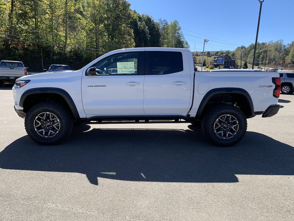 Summit White 2026 Chevrolet Colorado ZR2 4WD 8-Speed Automatic 2.7L I4 Turbocharged DOHC 16V LEV3-ULEV50 310hp 4WD, 3.42 Rear Axle Ratio, 4-Way Manual Passenger Seat Adjuster, 4-Wheel Disc Brakes, 6 Speakers, 6-Speaker Audio System Feature, 8-Way Power Driver Seat Adjuster, ABS brakes, Adaptive Cruise Control, Air Conditioning, Alloy wheels, AM/FM radio: SiriusXM with 360L, Apple CarPlay/Android Auto, Auto High-beam Headlights, Auto-dimming Rear-View mirror, Automatic Emergency Braking, Automatic temperature control, Black Nameplates (LPO), Bose Premium 7-Speaker Audio System Feature, Brake assist, Chevy Safety Assist, Compass, Delay-off headlights, Driver & Front Passenger Heated Seats, Driver & Front Passenger Ventilated Seats, Driver door bin, Driver Memory Settings, Driver Seatback Map Pocket, Driver vanity mirror, Dual front impact airbags, Dual front side impact airbags, Electronic Stability Control, Emergency communication system: OnStar, Following Distance Indicator, Forward Collision Alert, Front anti-roll bar, Front Bucket Seats, Front Center Armrest, Front dual zone A/C, Front fog lights, Front Passenger Seatback Map Pocket, Front Pedestrian & Bicyclist Braking, Front reading lights, Front wheel independent suspension, HD Surround Vision, Heated door mirrors, Heated front seats, Heated steering wheel, Illuminated entry, IntelliBeam Automatic High Beam On/Off, Lane Keep Assist w/Lane Departure Warning, Low tire pressure warning, Memory seat, Navigation System, Occupant sensing airbag, Outside temperature display, Overhead airbag, Overhead console, Panic alarm, Passenger door bin, Passenger vanity mirror, Perforated Leather-Appointed Seat Trim, Power door mirrors, Power Driver Lumbar Control Seat Adjuster, Power driver seat, Power steering, Power windows, Preferred Equipment Group 4ZR, Radio data system, Radio: 11.3' Diagonal Advanced Color LCD Display, Rear Pedestrian Alert, Rear reading lights, Rear seat center armrest, Rear step bumper, Rear window defroster, Remote keyless entry, Security system, SiriusXM w/360L Trial Subscription, Speed control, Speed-sensing steering, Split folding rear seat, Steering Wheel Mounted Audio Controls, Steering wheel mounted audio controls, Tachometer, Technology Package, Telescoping steering wheel, Tilt steering wheel, Traction control, Trip computer, Variably intermittent wipers, Ventilated front seats, Wheels: 17' x 8' Graphite & Oxide Gold Aluminum, Wireless Phone Projection, ZR2 Off-Road Package, 4WD.