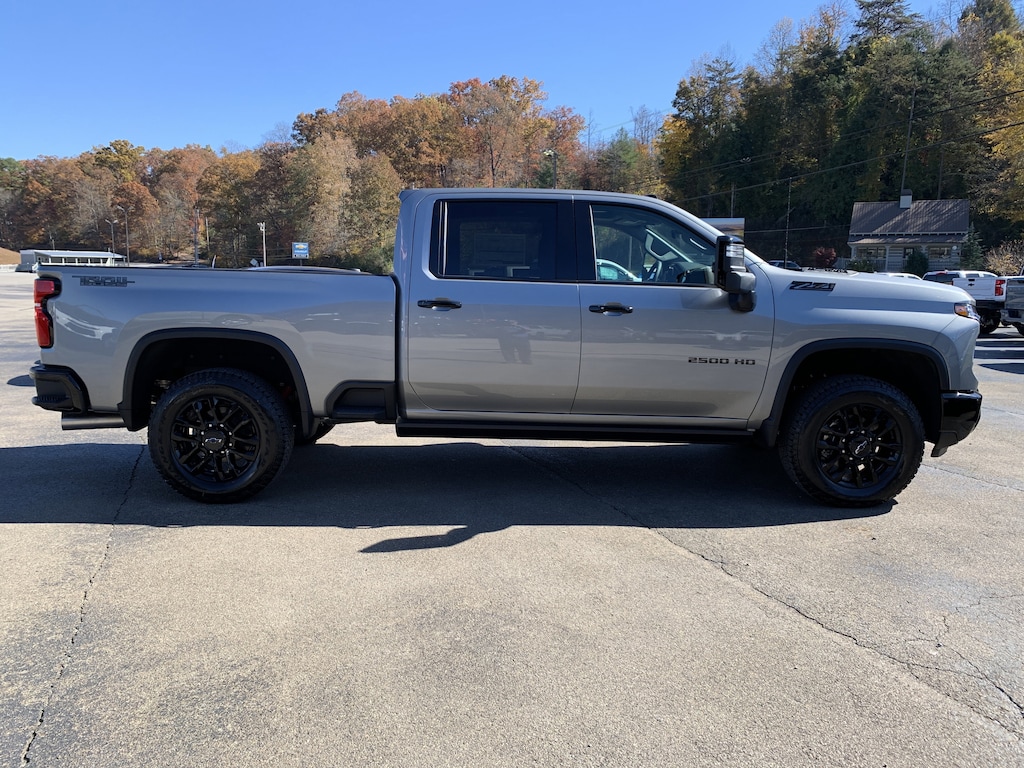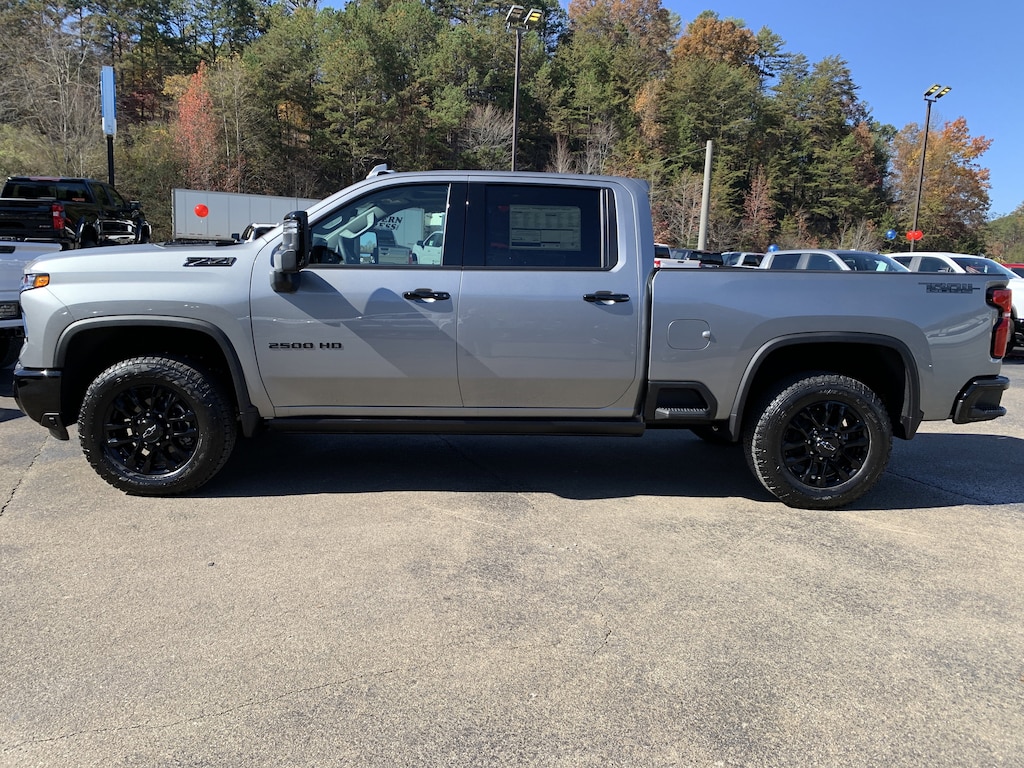 Sterling Gray Metallic 2026 Chevrolet Silverado 2500HD LTZ 4WD 10-Speed Automatic Duramax 6.6L V8 Turbodiesel 10-Speed Automatic, 4WD, Jet Black Leather, 10-Way Power Driver Seat Adjuster w/Lumbar, 10-Way Power Passenger Seat Adjuster w/Lumbar, 120-Volt Bed Mounted Power Outlet, 120-Volt Interior Power Outlet, 170 Amp Alternator, 1st & 2nd Row All-Weather Floor Liners (LPO) (AAK), 4-Wheel Disc Brakes, 6 Speakers, 6-Speaker Audio System, 720 Cold-Cranking Amps Heavy-Duty Battery, ABS brakes, Adaptive Cruise Control, Air Conditioning, Alloy wheels, AM/FM radio: SiriusXM with 360L, Apple CarPlay/Android Auto, Auto High-beam Headlights, Auto-dimming door mirrors, Auto-Dimming Inside Rear-View Mirror, Auto-dimming Rear-View mirror, Automatic temperature control, Black Chevytec Spray-On Bedliner, Bluetooth For Phone, Brake assist, Bumpers: chrome, Chevrolet Connected Access Capable, Chrome Door Handles, Chrome Mirror Caps, Color-Keyed Carpeting Floor Covering, Compass, Deep-Tinted Glass, Delay-off headlights, Driver door bin, Driver Memory, Driver vanity mirror, Dual front impact airbags, Dual front side impact airbags, Durabed Pickup Bed, Electric Rear-Window Defogger, Electronic Cruise Control w/Set & Resume Speed, Electronic Stability Control, Emergency communication system: OnStar, EZ Lift Power Lock & Release Tailgate, Front 40/20/40 Split-Bench Seats w/Lockable Storage, Front anti-roll bar, Front Bucket Seats, Front Center Armrest w/Storage, Front dual zone A/C, Front fog lights, Front LED Fog Lamps, Front Rain-Sensing Wipers, Front reading lights, Front Rubberized Vinyl Floor Mats, Front wheel independent suspension, Fully automatic headlights, Gooseneck/5th Wheel Prep Package, HD Rear Vision Camera, Heated door mirrors, Heated Driver & Front Outboard Passenger Seating, Heated front seats, Heated Steering Wheel, Heated steering wheel, Hill Descent Control, Hitch Guidance w/Hitch View, Hitch Package (LPO), Illuminated entry, In-Vehicle Trailering App System, Keyless Open & Start, LED Smoked Amber Roof Marker Lamps, Low tire pressure warning, LTZ Convenience Package, LTZ Convenience Package II, LTZ Plus Package, Manual Tilt & Telescoping Steering Column, Memory seat, Occupant sensing airbag, OnStar Services Capable, Outside temperature display, Overhead airbag, Overhead console, Panic alarm, Passenger door bin, Passenger vanity mirror, Perf Leather-Appointed Front Outboard Seat Trim, Power Door Locks, Power door mirrors, Power driver seat, Power Front Windows w/Driver Express Up/Down, Power Front Windows w/Passenger Express Up/Down, Power passenger seat, Power Rear Windows w/Express Down, Power steering, Power Sunroof, Power windows, Power-Retractable Black Assist Steps, Premium audio system: Chevrolet Infotainment 3 Premium, Push Button Start, Radio: Chevrolet Infotainment 3 Premium System, Rain sensing wipers, Rear Camera Mirror, Rear reading lights, Rear Rubberized Vinyl Floor Mats, Rear seat center armrest, Rear step bumper, Rear Wheelhouse Liners, Rear window defroster, Remote keyless entry, Remote Vehicle Starter System, Safety Package, Security system, SiriusXM w/360L Trial Subscription, Speed control, Speed-sensing steering, Split folding rear seat, Standard Tailgate, Steering Wheel Audio Controls, Steering wheel mounted audio controls, Suspension Package, Tachometer, Technology Package, Telescoping steering wheel, Tilt steering wheel, Traction control, Trail Boss Package, Trip computer, Turn signal indicator mirrors, Unauthorized Entry Theft-Deterrent System, Up-Level Rear Seat w/Storage Package, Variably intermittent wipers, Voltmeter, Wheels: 18' Machined Alum w/Silver Painted Accents, Wheels: 20' High Gloss Black Painted, Wi-Fi Hotspot Capable, Wireless Phone Projection, Wrapped Steering Wheel, Z71 Off-Road Package, 10-Speed Automatic, 4WD, Jet Black Leather.