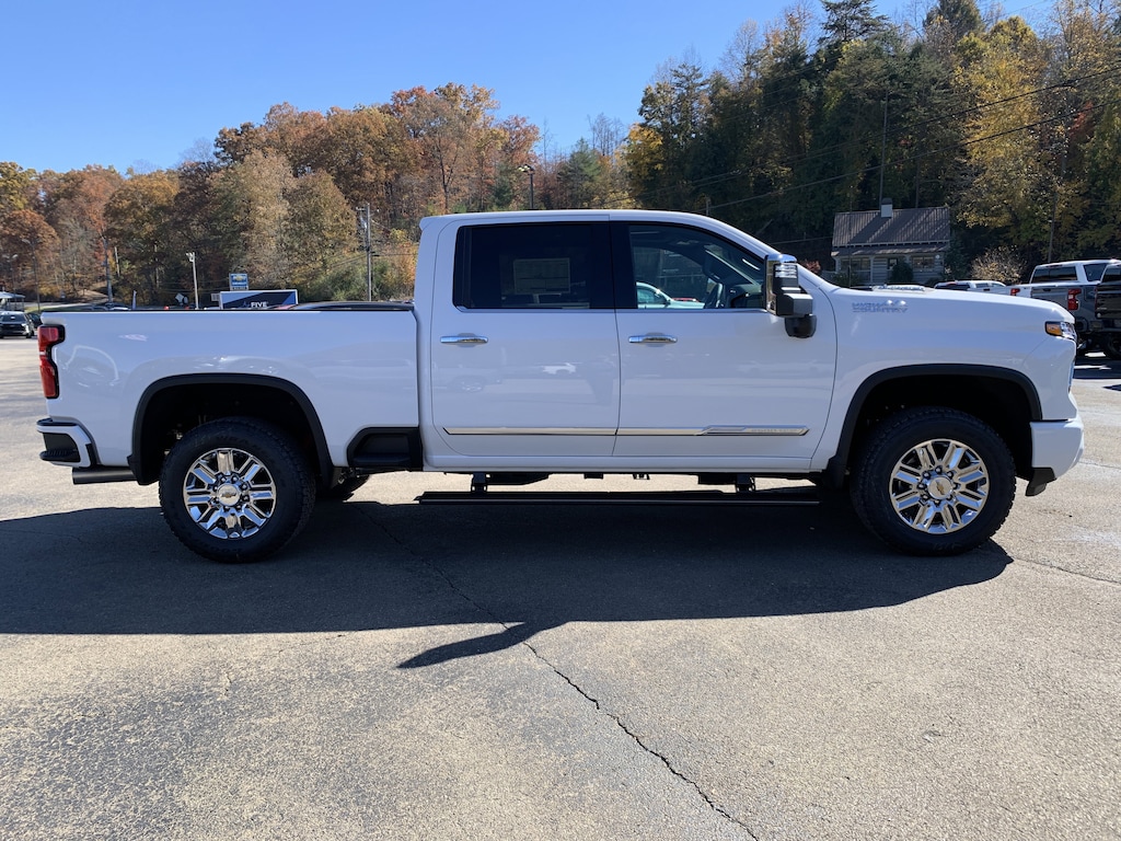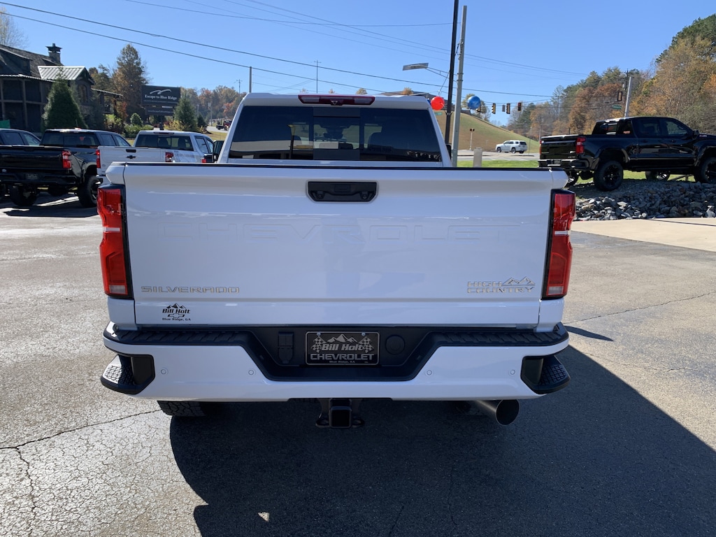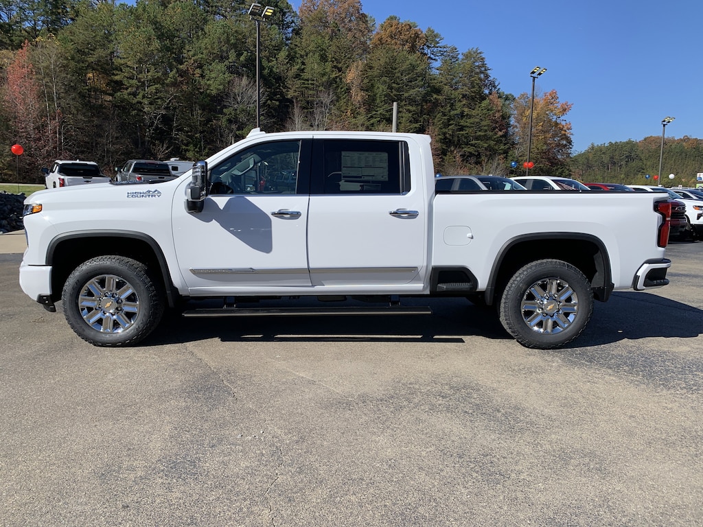 Summit White 2026 Chevrolet Silverado 2500HD High Country 4WD 10-Speed Automatic Duramax 6.6L V8 Turbodiesel 10-Speed Automatic, 4WD, Jet Black/Umber Leather, 10-Way Power Driver Seat Adjuster w/Lumbar, 10-Way Power Passenger Seat Adjuster w/Lumbar, 120-Volt Bed Mounted Power Outlet, 120-Volt Interior Power Outlet, 170 Amp Alternator, 1st & 2nd Row All-Weather Floor Liners (LPO) (AAK), 4-Wheel Disc Brakes, 6' Rectangular Chromed Tubular Assist Steps, 7 Speakers, 720 Cold-Cranking Amps Heavy-Duty Battery, ABS brakes, Air Conditioning, Alloy wheels, AM/FM radio: SiriusXM with 360L, Apple CarPlay/Android Auto, Auto High-beam Headlights, Auto-dimming door mirrors, Auto-Dimming Inside Rear-View Mirror, Auto-dimming Rear-View mirror, Automatic temperature control, Bed View Camera w/2 Trailer Camera Provisions, Black Chevytec Spray-On Bedliner, Bluetooth For Phone, Bodyside moldings, BOSE Premium 7-Speaker Sound System, Brake assist, Bumpers: body-color, Chevrolet Connected Access Capable, Chrome Door Handles, Chrome Mirror Caps, Color-Keyed Carpeting Floor Covering, Compass, Deep-Tinted Glass, Delay-off headlights, Driver door bin, Driver Memory, Driver vanity mirror, Dual front impact airbags, Dual front side impact airbags, Durabed Pickup Bed, Electric Rear-Window Defogger, Electronic Stability Control, Emergency communication system: OnStar, Floor-Mounted Center Console, Front anti-roll bar, Front Bucket Seats, Front Carpeted Floor Mats, Front Center Armrest, Front Chrome Recovery Hooks, Front dual zone A/C, Front fog lights, Front LED Fog Lamps, Front Rain-Sensing Wipers, Front reading lights, Front wheel independent suspension, Fully automatic headlights, Garage door transmitter, Genuine wood console insert, Genuine wood dashboard insert, Genuine wood door panel insert, Gooseneck/5th Wheel Prep Package, Heated 2nd Row Outboard Seats, Heated door mirrors, Heated Driver & Front Outboard Passenger Seating, Heated front seats, Heated rear seats, Heated Steering Wheel, Heated steering wheel, High Country Premium Package, Hitch Guidance w/Hitch View, Hitch Package (LPO), Illuminated entry, In-Vehicle Trailering App System, Keyless Open & Start, LED Cargo Area Lighting, Low tire pressure warning, Manual Tilt & Telescoping Steering Column, Max Trailering Package, Memory seat, Occupant sensing airbag, Off-Road Suspension, OnStar Services Capable, Outside temperature display, Overhead airbag, Overhead console, Panic alarm, Passenger door bin, Passenger vanity mirror, Perforated Leather Seat Trim, Polished Exhaust Tip, Power Door Locks, Power door mirrors, Power driver seat, Power Front Windows w/Driver Express Up/Down, Power Front Windows w/Passenger Express Up/Down, Power passenger seat, Power Rear Windows w/Express Down, Power Sliding Rear Window w/Defogger, Power steering, Power windows, Power-Retractable Assist Steps, Premium audio system: Chevrolet Infotainment 3 Premium, Push Button Start, Pwr Up/Down Tailgate Function w/Pwr Lock & Release, Radio: Chevrolet Infotainment 3 Premium System, Rain sensing wipers, Rear Carpeted Floor Mats, Rear Cross Traffic Alert, Rear reading lights, Rear seat center armrest, Rear step bumper, Rear Wheelhouse Liners, Rear window defroster, Remote keyless entry, Remote Vehicle Starter System, Security system, SiriusXM w/360L Trial Subscription, Speed control, Speed-sensing steering, Split folding rear seat, Standard Tailgate, Steering Wheel Audio Controls, Steering wheel mounted audio controls, Suspension Package, Tachometer, Telescoping steering wheel, Tilt steering wheel, Traction control, Trailer Camera Provisions, Trip computer, Turn signal indicator mirrors, Ultrasonic Front & Rear Park Assist, Unauthorized Entry Theft-Deterrent System, Universal Home Remote, Up-Level Rear Seat w/Storage Package, Variably intermittent wipers, Ventilated Driver & Front Passenger Seats, Ventilated front seats, Voltmeter, Wheels: 20' 8-Spoke Bright Finish Aluminu