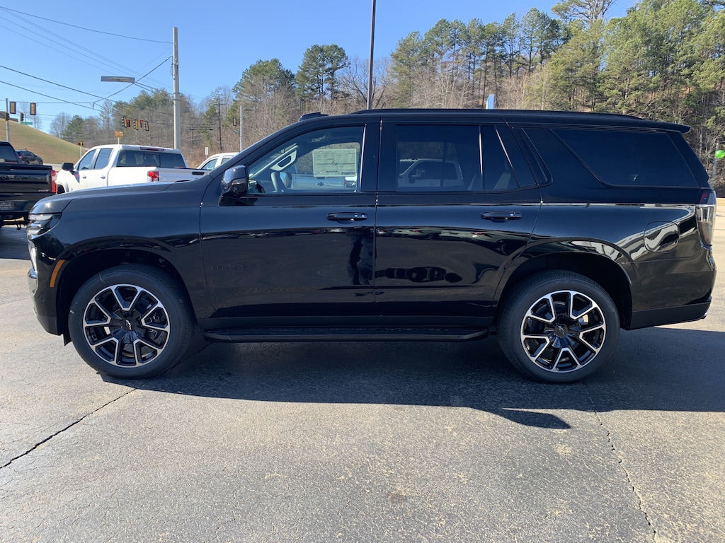 Black 2026 Chevrolet Tahoe RST 4WD 10-Speed Automatic with Overdrive EcoTec3 5.3L V8 4WD, Jet Black/Victory Red Leather, 1st and 2nd Row Color-Keyed Carpeted Floor Mats, 1st and 2nd Rows All-Weather Floor Liners, 2-Speed Active Electronic AutoTrac Transfer Case, 2-Way Power Driver Lumbar Seat Adjuster, 2-Way Power Front Passenger Lumbar Seat Adjuster, 2nd Row Power Release 60/40 Split-Folding Bench Seat, 3-Spoke Wrapped Steering Wheel, 3.23 Rear Axle Ratio, 3rd Row 60/40 Power-Folding Split-Bench Seat, 3rd Row All-Weather Floor Liners, 3rd Row Manual 60/40 Split-Folding Bench Seats, 3rd row seats: split-bench, 4-Wheel Disc Brakes, 6 Speakers, 6-Speaker Audio System Feature, 8-Way Power Driver Seat Adjuster, 8-Way Power Front Passenger Seat Adjuster, ABS brakes, Advanced Trailering Package, Air Conditioning, All-Weather Cargo Mat, All-Weather Liner Protection Package, Alloy wheels, AM/FM radio: SiriusXM with 360L, Apple CarPlay/Android Auto, Auto High-beam Headlights, Auto-Dimming Inside Rear-View Mirror, Auto-dimming Rear-View mirror, Automatic temperature control, Blind Zone Steering Assist with Trailering, Bose 10-Speaker Centerpoint Surround Audio System Feature, Brake assist, Bright Front and Rear Door Sill Plates, Bumpers: body-color, Color-Keyed Carpeting Floor Covering, Comfort Package, Compass, Delay-off headlights, Driver door bin, Driver vanity mirror, Dual Exhaust System, Dual front impact airbags, Dual front side impact airbags, Dual-Pane Power Panoramic Sunroof, Electronic Stability Control, Emergency communication system: OnStar and Chevrolet connected services capable, Exterior Parking Camera Rear, Extra Capacity Cooling System, Floor Console with Storage Area, Four wheel independent suspension, Front anti-roll bar, Front Bucket Seats, Front Center Armrest, Front dual zone A/C, Front fog lights, Front LED Fog Lamps, Front reading lights, Frontal Driver and Outboard Passenger Airbags, Fully automatic headlights, Garage door transmitter, Heated 2nd Row Outboard Seats, Heated door mirrors, Heated Driver and Front Passenger Seats, Heated front seats, Heated Steering Wheel, Hill Descent Control, Hitch View with Pan/Zoom Image Adjustment, Illuminated entry, Integrated Trailer Brake Controller, Interior Camera, Key Card, LED Headlamps with LED Daytime Running Lamps, LED Tail Lamps, Low tire pressure warning, Max Trailering Package, Memory seat, Memory Settings, Memory Settings For Driver, Navigation system: Google built-in compatibility (select service plan required, terms and limitations apply), Occupant sensing airbag, Outside Heated Power-Adjustable Mirrors, Outside temperature display, Overhead airbag, Overhead console, Panic alarm, Passenger door bin, Passenger vanity mirror, Perforated Leather Seat Trim, Power door mirrors, Power driver seat, Power Liftgate, Power passenger seat, Power Release 2nd Row Bucket Seats, Power steering, Power windows, Preferred Equipment Group 1SP, Premium audio system: Chevrolet Infotainment 3 Premium, Premium Smooth Ride Suspension, Radio data system, Radio: 17.7' Diagonal Advanced Color LCD Display, Rain sensing wipers, Rear air conditioning, Rear anti-roll bar, Rear Power Liftgate, Rear reading lights, Rear seat center armrest, Rear window defroster, Rear window wiper, Remote keyless entry, Remote Start, RST Exterior Features, Security system, Set of 4 Wheel Locks, SiriusXM with 360L Trial Subscription, Smart Trailer Integration Indicator, Speed control, Speed-sensing steering, Split folding rear seat, Spoiler, Steering wheel mounted audio controls, Tachometer, Telescoping steering wheel, Tilt steering wheel, Traction control, Trip computer, Universal Home Remote, USB Ports, Variably intermittent wipers, Voltmeter, Wheels: 22' x 9' Bright Machined, Wireless Phone Charging, 4WD, Jet Black/Victory Red Leather.
