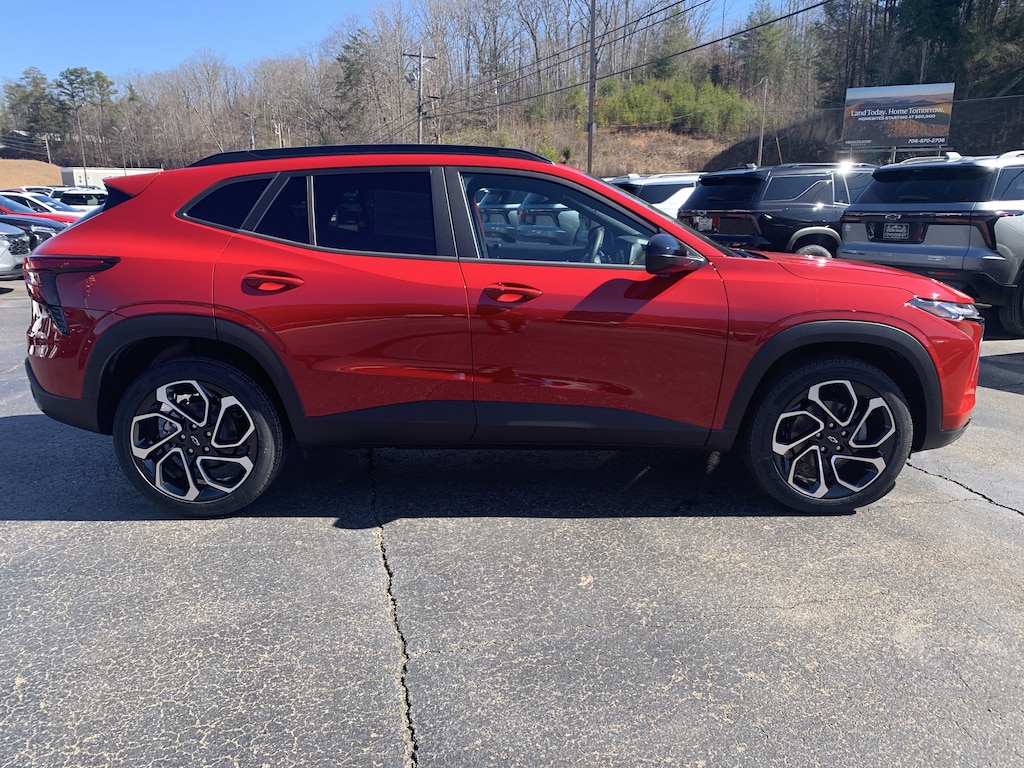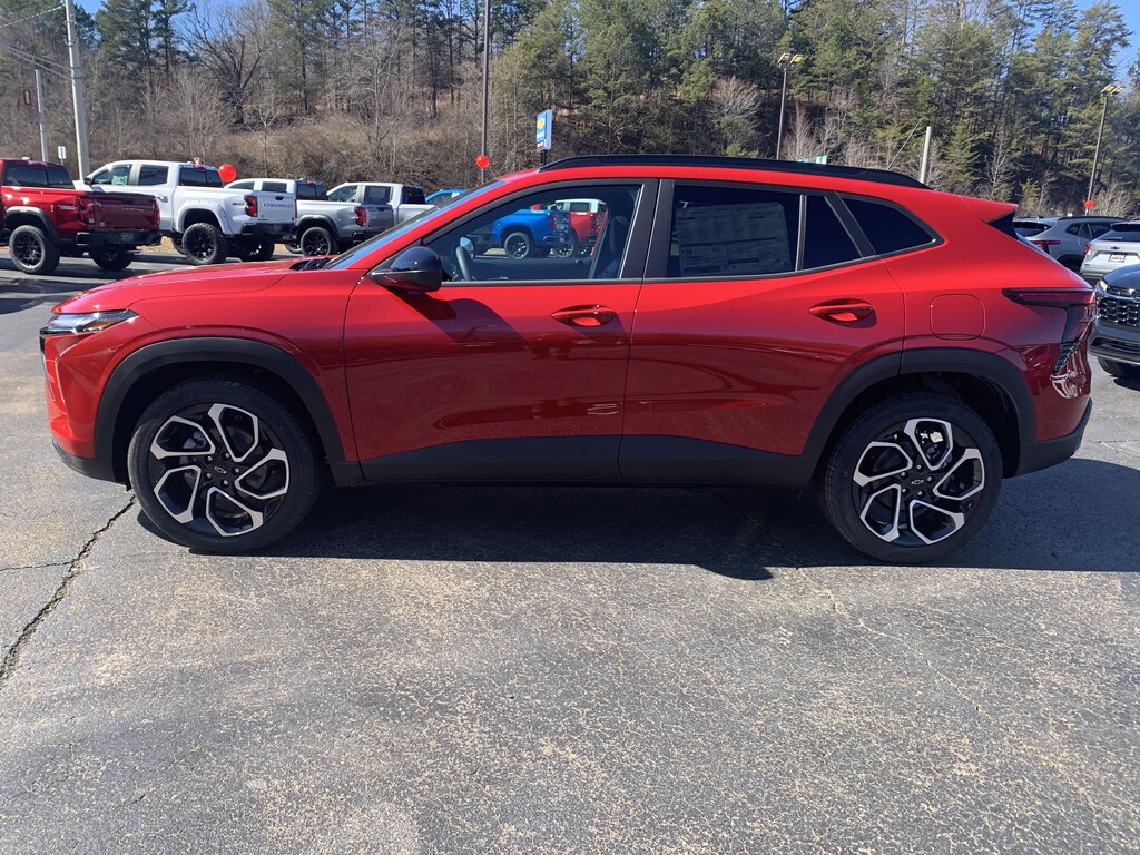 Apex Red 2026 Chevrolet Trax 2RS FWD 6-Speed Automatic ECOTEC 1.2L Turbo 2-Way Adjustable Front Head Restraints, 2-Way Power Driver Lumbar Seat Adjuster, 3.50 Final Drive Axle Ratio, 4-Way Manual Front Passenger Seat Adjuster, 4-Wheel Disc Brakes, 6 Speakers, 6-Speaker Audio System Feature, 8-Way Power Driver Seat Adjuster, ABS brakes, Adaptive Cruise Control, Air Conditioning, Alloy wheels, AM/FM radio: SiriusXM, Auto High-beam Headlights, Automatic temperature control, Brake assist, Bumpers: body-color, Compass, Delay-off headlights, Driver Confidence Package, Driver door bin, Driver vanity mirror, Dual front impact airbags, Dual front side impact airbags, Electronic Stability Control, Emergency communication system: OnStar One Essentials, Evotex Seat Trim, Exterior Parking Camera Rear, Front and Rear Jet Black All-Weather Floor Liners, Front anti-roll bar, Front Bucket Seats, Front Center Armrest, Front reading lights, Front wheel independent suspension, Fully automatic headlights, Heated door mirrors, Heated Driver and Front Passenger Seats, Heated front seats, Heated steering wheel, Illuminated entry, Interior Protection Package, Jet Black Cargo Liner, Lane Change Alert with Side Blind Zone Alert, Leather steering wheel, Low tire pressure warning, Occupant sensing airbag, Outside temperature display, Overhead airbag, Overhead console, Panic alarm, Passenger door bin, Passenger vanity mirror, Power door mirrors, Power driver seat, Power Sliding Glass Sunroof with Manual Shade, Power steering, Power windows, Preferred Equipment Group 2RS, Premium audio system: Chevrolet Infotainment 3, Radio data system, Radio: AM/FM Stereo Audio System, Rear Cross Traffic Alert, Rear Park Assist, Rear window defroster, Rear window wiper, Remote keyless entry, Security system, SiriusXM Trial Subscription, Speed control, Split folding rear seat, Spoiler, Sport steering wheel, Steering wheel mounted audio controls, Sunroof Package, Tachometer, Telescoping steering wheel, Tilt steering wheel, Traction control, Trip computer, Variably intermittent wipers, Wheels: 19' Black-Painted Machined Aluminum, Wireless Apple CarPlay/Wireless Android Auto, Wireless Charging. 28/32 City/Highway MPG Price includes: $500 - Customer Cash. Exp. 03/02/2026