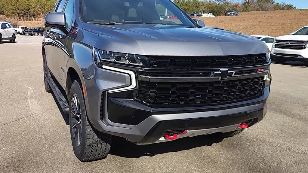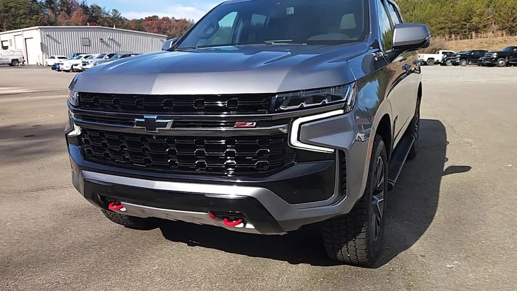 4WD, Gideon/Very Dark Atmosphere Leather, 10-Way Power Driver & Passenger Seat Adjusters, 1st & 2nd Row Color-Keyed Carpeted Floor Mats, 1st, 2nd & 3rd Rows All-Weather Floor Liners (LPO), 2 USB Data Ports, 2-Speed Active Electronic AutoTrac Transfer Case, 2nd Row Pwr Release 60/40 Split-Folding Bench Seat, 3.23 Rear Axle Ratio, 3rd Row 60/40 Power-Folding Split-Bench Seat, 3rd row seats: split-bench, 4-Wheel Disc Brakes, 9 Speakers, ABS brakes, Advanced Trailering Package, Advanced Trailering System, Air Conditioning, Alloy wheels, AM/FM radio: SiriusXM with 360L, Apple CarPlay/Android Auto, Auto High-beam Headlights, Auto-Dimming Inside Rear-View Mirror, Auto-dimming Rear-View mirror, Automatic Heated Steering Wheel, Automatic temperature control, Black Tubular Assist Steps, Bose 9-Speaker Stereo Audio System Feature, Brake assist, Bright Front & Rear Door Sill Plates, Bumpers: body-color, Color-Keyed Carpeting Floor Covering, Compass, Delay-off headlights, Driver & Front Outboard Passenger Airbags, Driver Alert Package, Driver door bin, Driver vanity mirror, Dual front impact airbags, Dual front side impact airbags, Dual-Pane Power Panoramic Sunroof, Electronic Stability Control, Emergency communication system: OnStar and Chevrolet connected services capable, Extra Capacity Cooling System, Floor Console w/Storage Area, Four wheel independent suspension, Front & Rear Park Assist, Front anti-roll bar, Front Bucket Seats, Front Center Armrest, Front dual zone A/C, Front High-Approach Angle Fascia, Front High-Back Reclining Bucket Seats, Front reading lights, Fully automatic headlights, Garage door transmitter, Hands-Free Rear Power Programmable Liftgate, HD Radio, HD Surround Vision, Heated 2nd Row Outboard Seats, Heated door mirrors, Heated Driver & Front Passenger Seats, Heated front seats, Hill Descent Control, Hitch Guidance w/Hitch View, Illuminated entry, Infotainment Display, Integrated Trailer Brake Controller, Lane Change Alert w/Side Blind Zone Alert, Lane Keep Assist w/Lane Departure Warning, Leather Seat Trim, Leather steering wheel, Leather-Wrapped Steering Wheel, LED Daytime Running Lamps, Low tire pressure warning, Luxury Package, Max Trailering Package, Memory seat, Memory Settings, Memory Settings for Driver, Occupant sensing airbag, Outside Heated Power-Adjustable Mirrors, Outside temperature display, Overhead airbag, Overhead console, Panic alarm, Passenger door bin, Passenger vanity mirror, Power door mirrors, Power driver seat, Power Liftgate, Power passenger seat, Power steering, Power Tilt & Telescopic Steering Column, Power windows, Preferred Equipment Group 2Z7, Premium audio system: Chevrolet Infotainment 3, Premium Smooth Ride Suspension, Radio: Chevrolet Infotainment 3 Plus System, Rain sensing wipers, Rear air conditioning, Rear anti-roll bar, Rear Cross Traffic Alert, Rear Pedestrian Alert, Rear reading lights, Rear seat center armrest, Rear window defroster, Rear window wiper, Red Horizontal-Mounted Recovery Hooks, Remote keyless entry, Remote Start, Roof rack: rails only, Security system, SiriusXM Radio w/360L, Speed control, Speed-sensing steering, Split folding rear seat, Spoiler, Steering wheel mounted audio controls, Tachometer, Telescoping steering wheel, Tilt steering wheel, Traction control, Trip computer, Universal Home Remote, Variably intermittent wipers, Voltmeter, Wheels: 20" x 9" Machined Aluminum, Z71 Signature Package (DISC), 4WD, Gideon/Very Dark Atmosphere Leather.